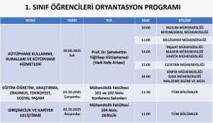 1. Sınıf Öğrencilerimiz için oryantasyon programları düzenlenecektir.  Tüm 1. sınıf öğrenclerimizin katılımı gerekmektedir.
